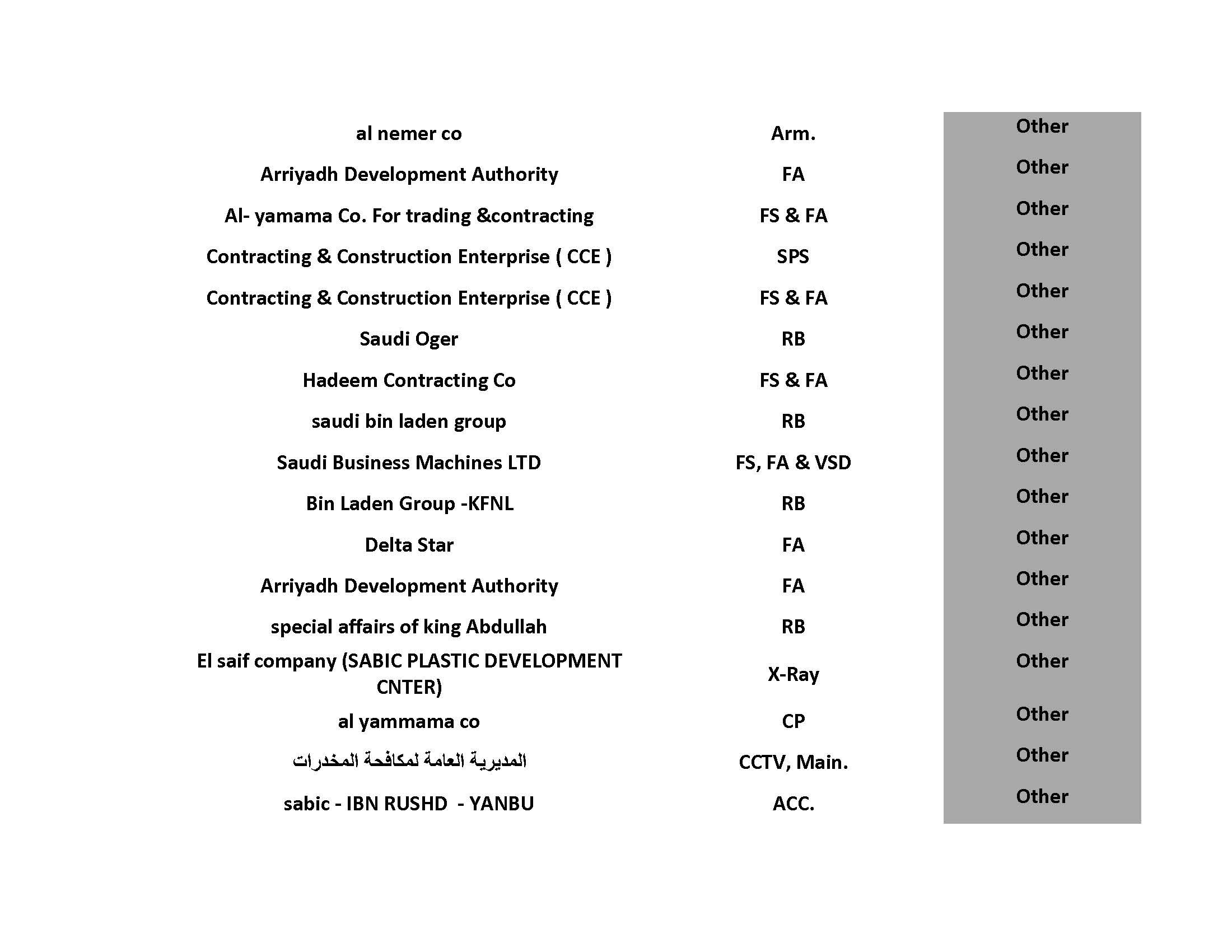 ETECHS is a pioneer in the Security Industry in Saudi Arabia and its most requested engineered systems are Total Security Management Systems, Closed Circuit Television (CCTV), Access Control, Perimeter Protection, X-Ray Scanners, Intrusion Alarms, Road Blockers, Explosive Detectors, Metal Detectors, Under Vehicle Inspection, Gas Detection, Fire Detection, Fire Fighting, Public Address, Master Clock, Nurse Call and Armoring equipment including Armored Vehicles, Armored Guard Houses, Bullet Proof Glass, Security Glass Films and Military Clothes.